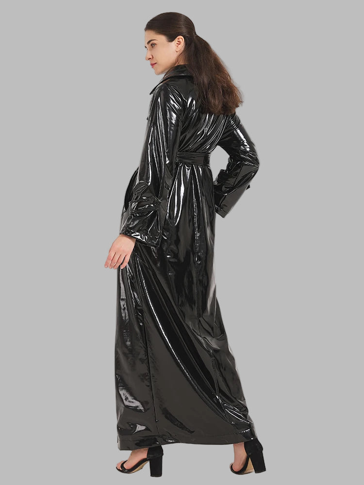 Abrigo Largo de Cuero Negro para Mujer Lacado Goth