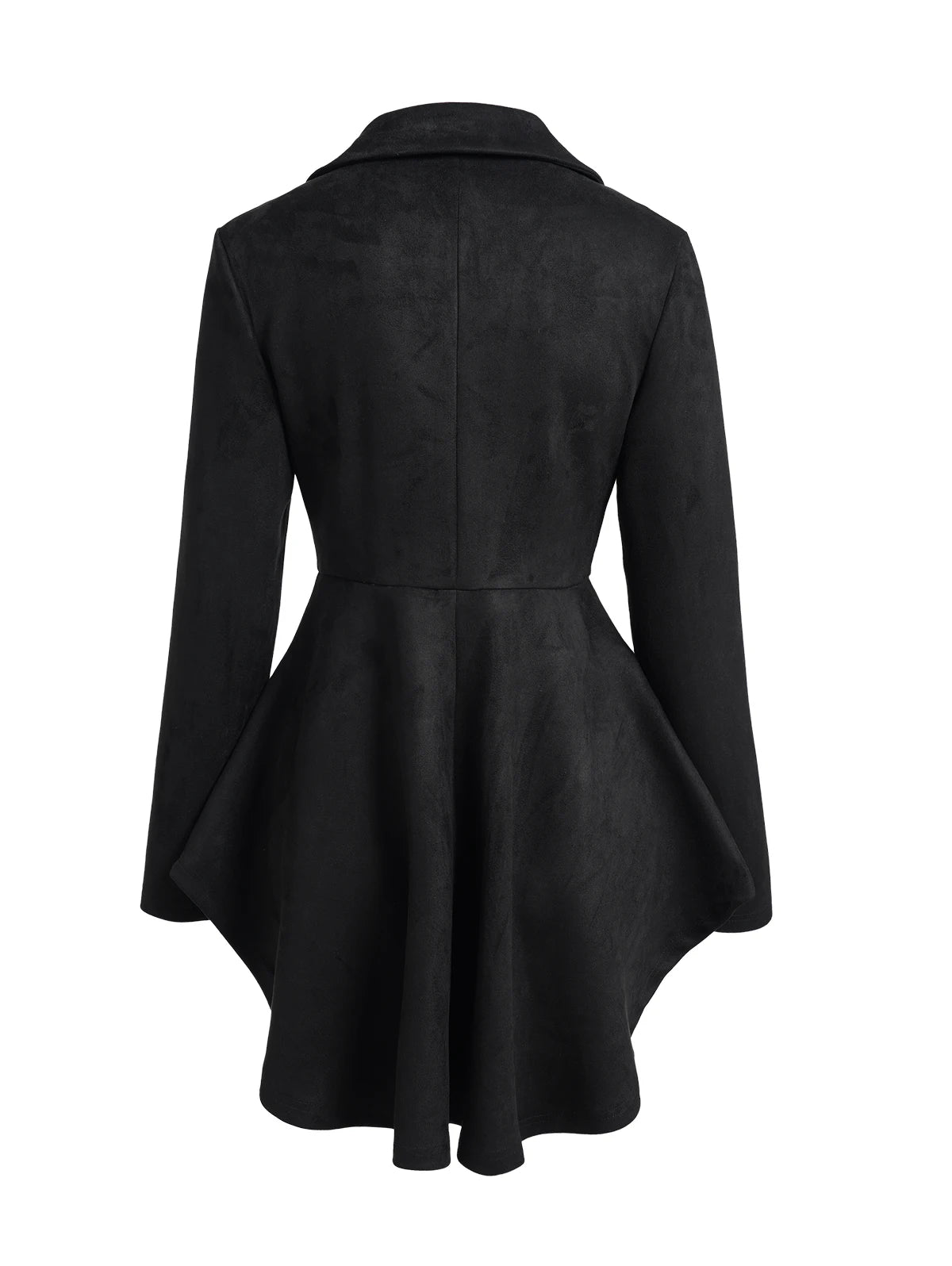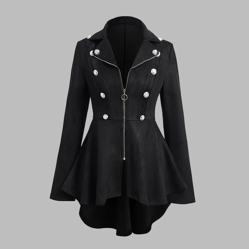 Abrigo gótico negro para mujer acampanado, con botones y cremallera