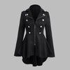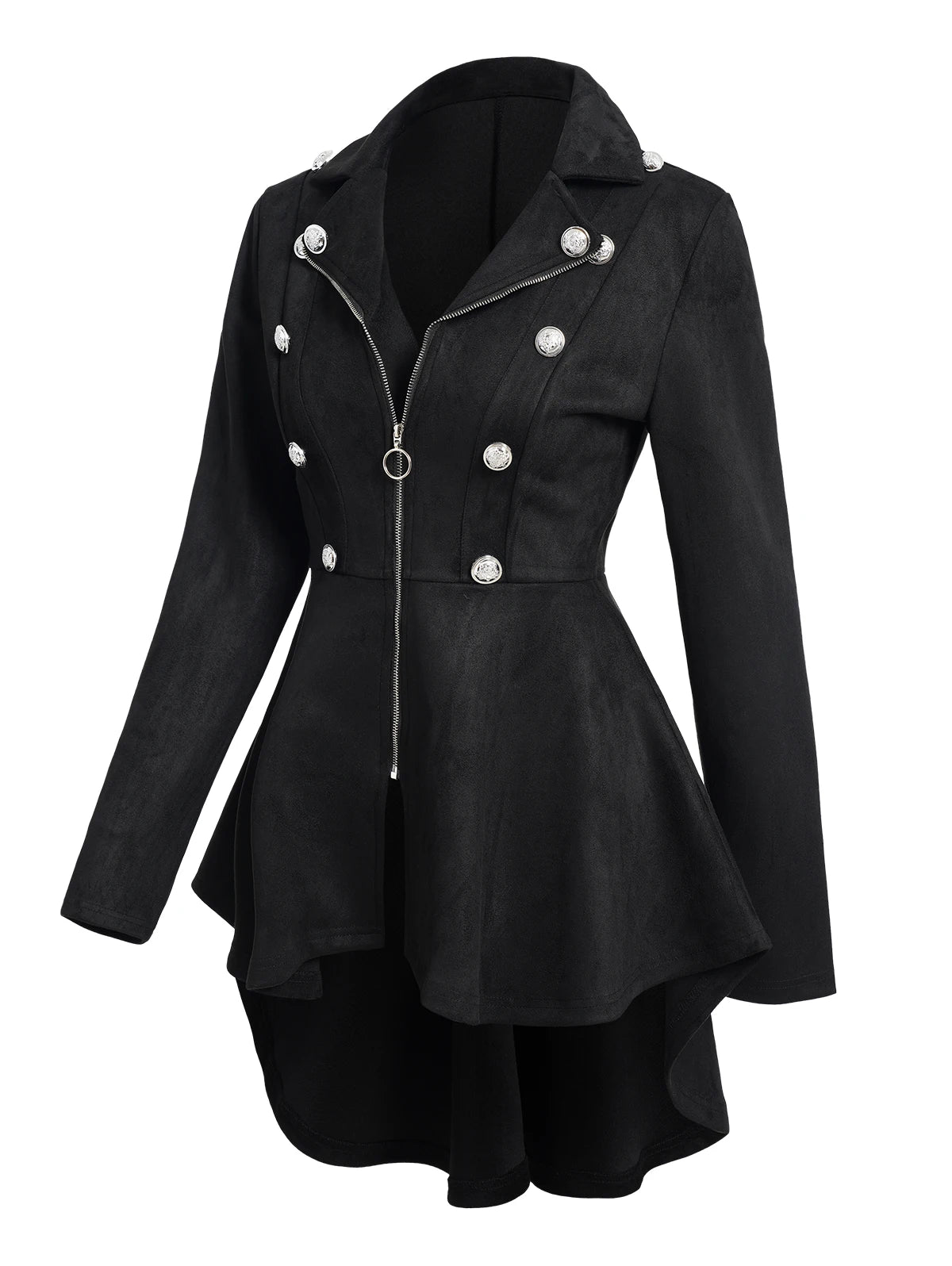 Abrigo negro gótico acampanado para mujer, con botones y cremallera