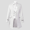 Biały Płaszcz Steampunk z Metalowymi Guzikami i Falbanami