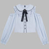 Blusa Azul Lolita con Hombros Descubiertos y Lazo Kawaii Lolita Jirai Kei