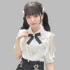 Blusa Blanca Lolita con Cuello de Perlas y Lazo Negro Jirai Kei