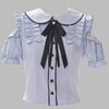 Blusa Jirai Kei Gris con Lazo y Volantes de Manga Corta
