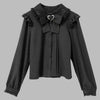 Blusa Negra Lolita Jirai Kei con Lazo y Cuello de Encaje