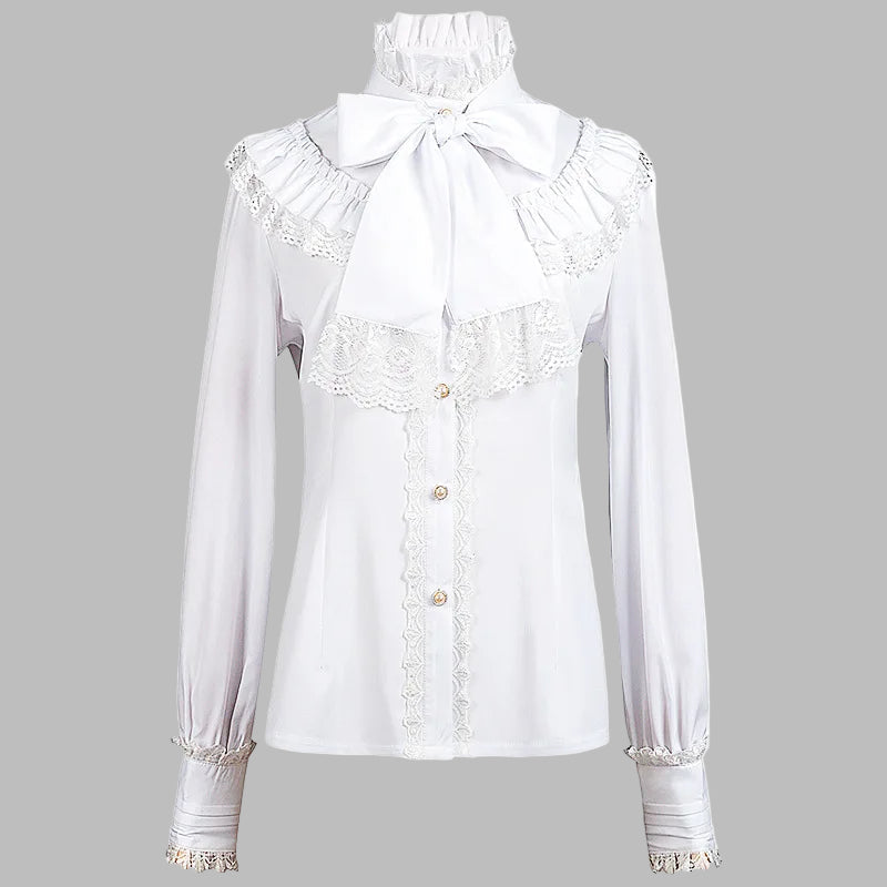 Blusa Steampunk Blanca con Aplique de Encaje y Lazo
