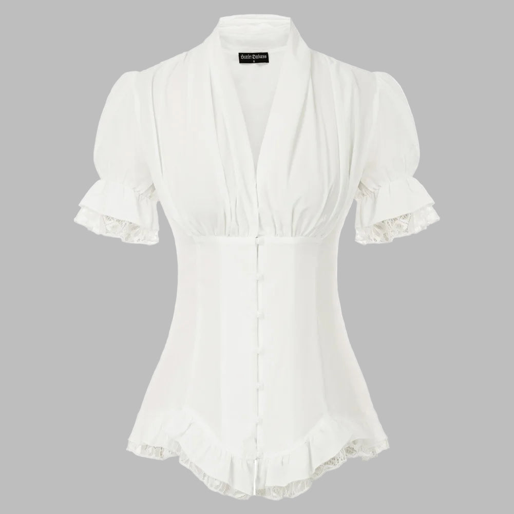 Blusa Steampunk Blanca con Encaje y Manga Corta