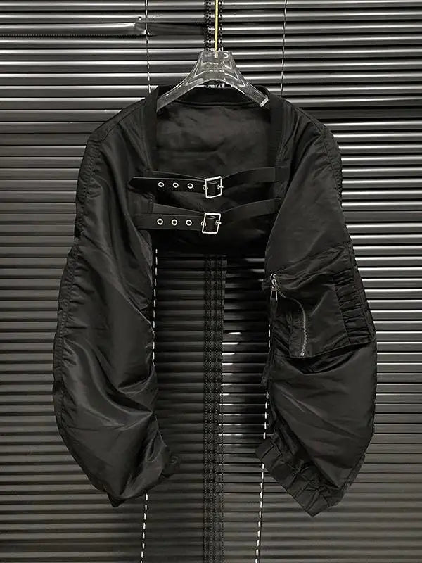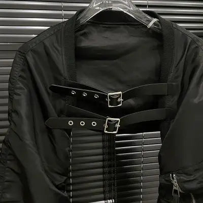 Bolero Unisex Negro Corto Cyber Gothic Punk con Correas y Hebillas Industrial