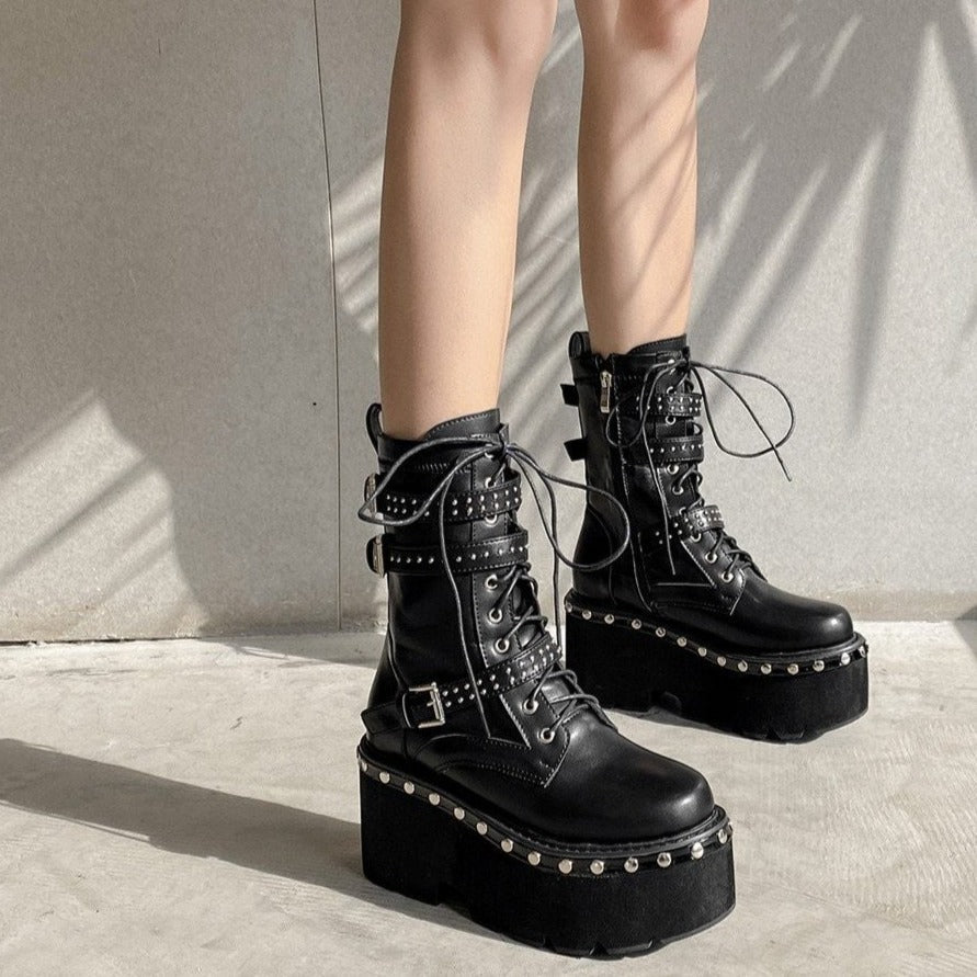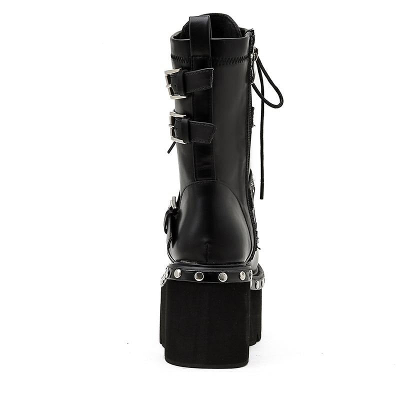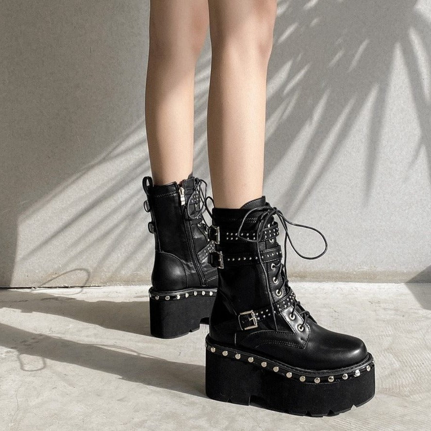 - Hebillas y puntera metálica: estilo agresivo y alternativo