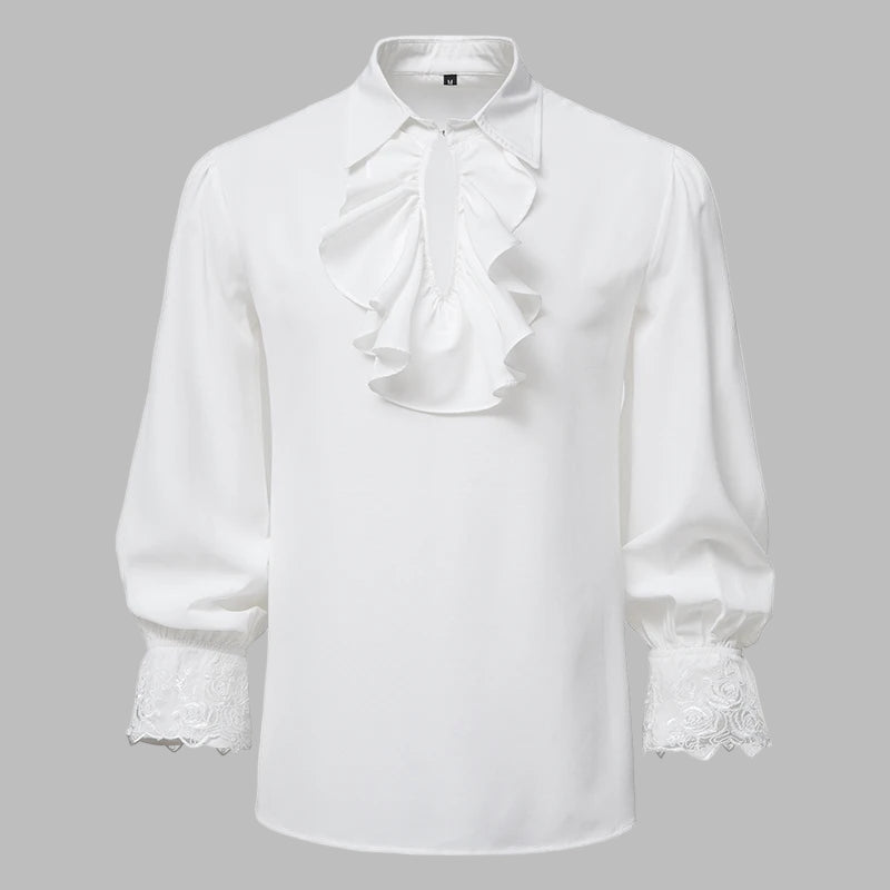 Camisa Rock Blanca con Puños de Encaje y Jabot XXL