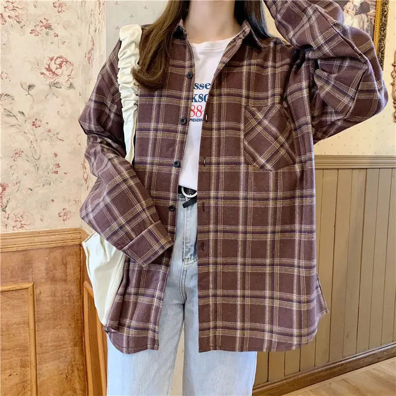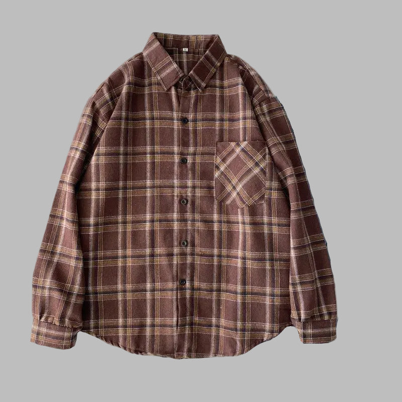 Camisa de Franela a Cuadros Punk Rock Marrón con Bolsillo