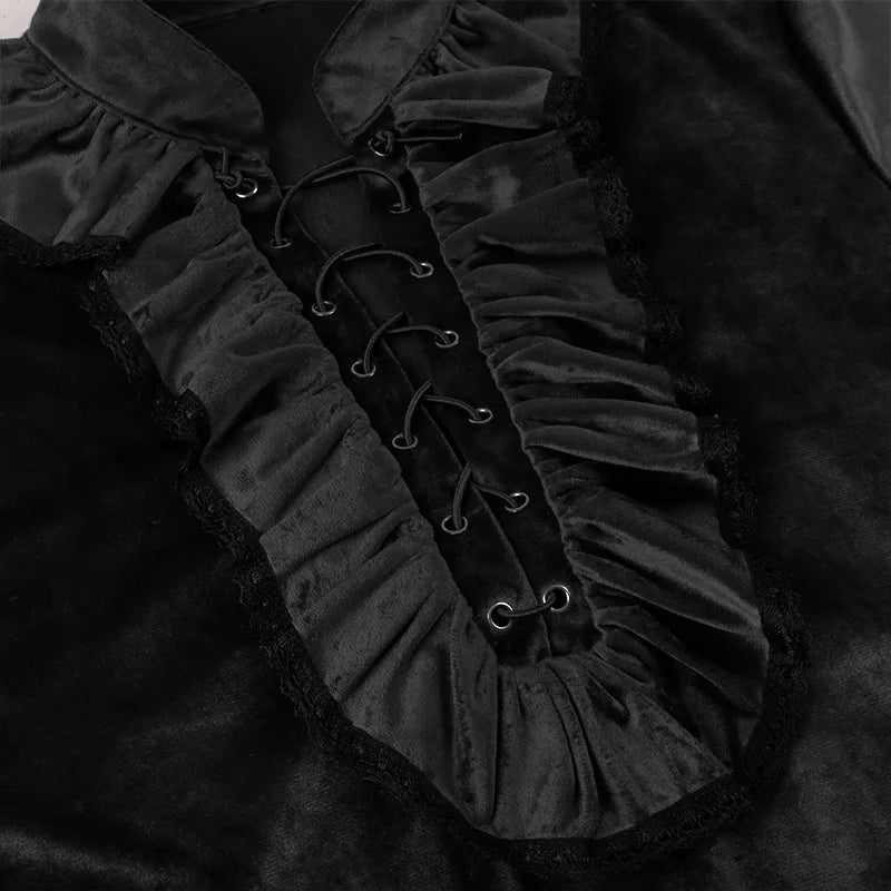 Camisa Elegante Negra Metal con Jabot y Cordones Ver opciones