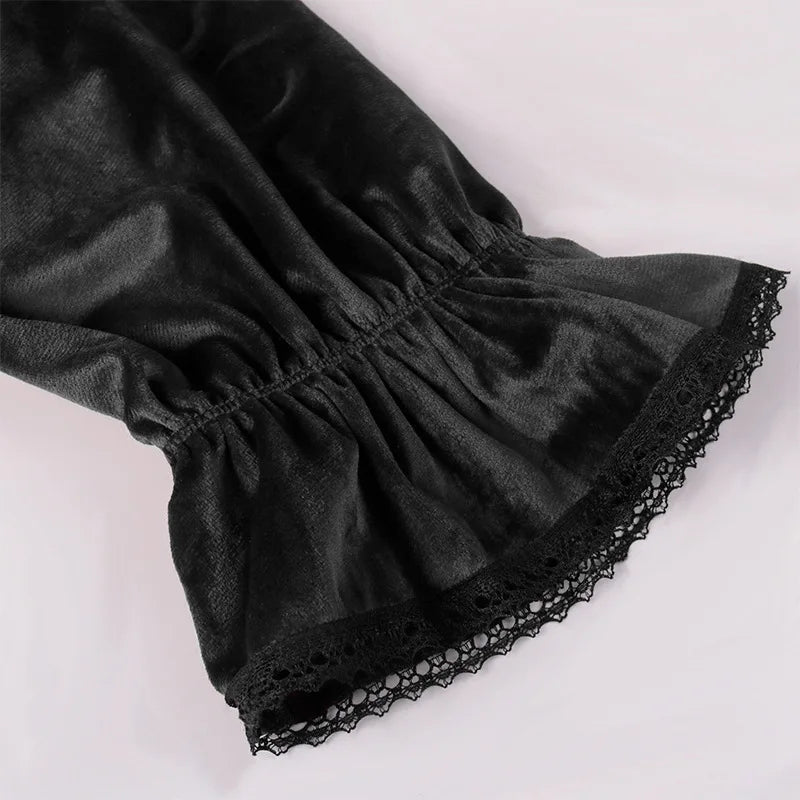 Camisa Elegante Negra Metal con Jabot y Cordones