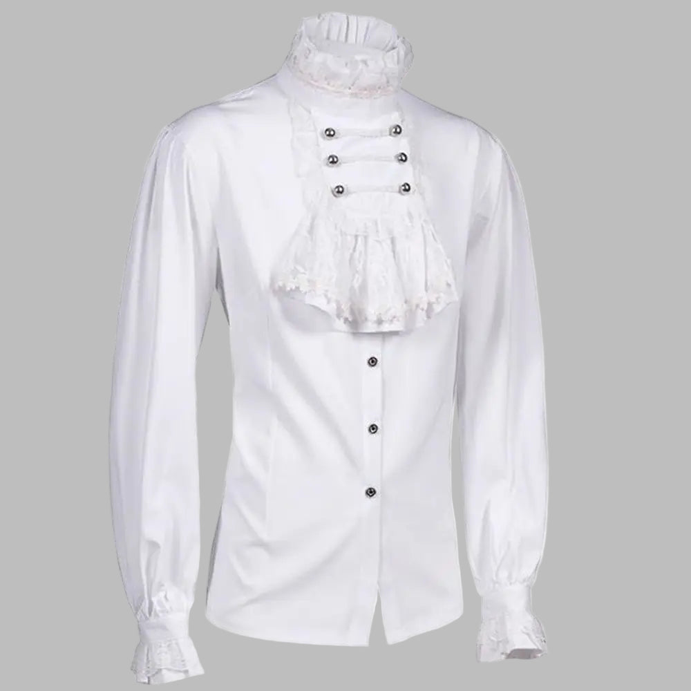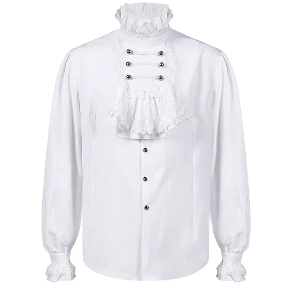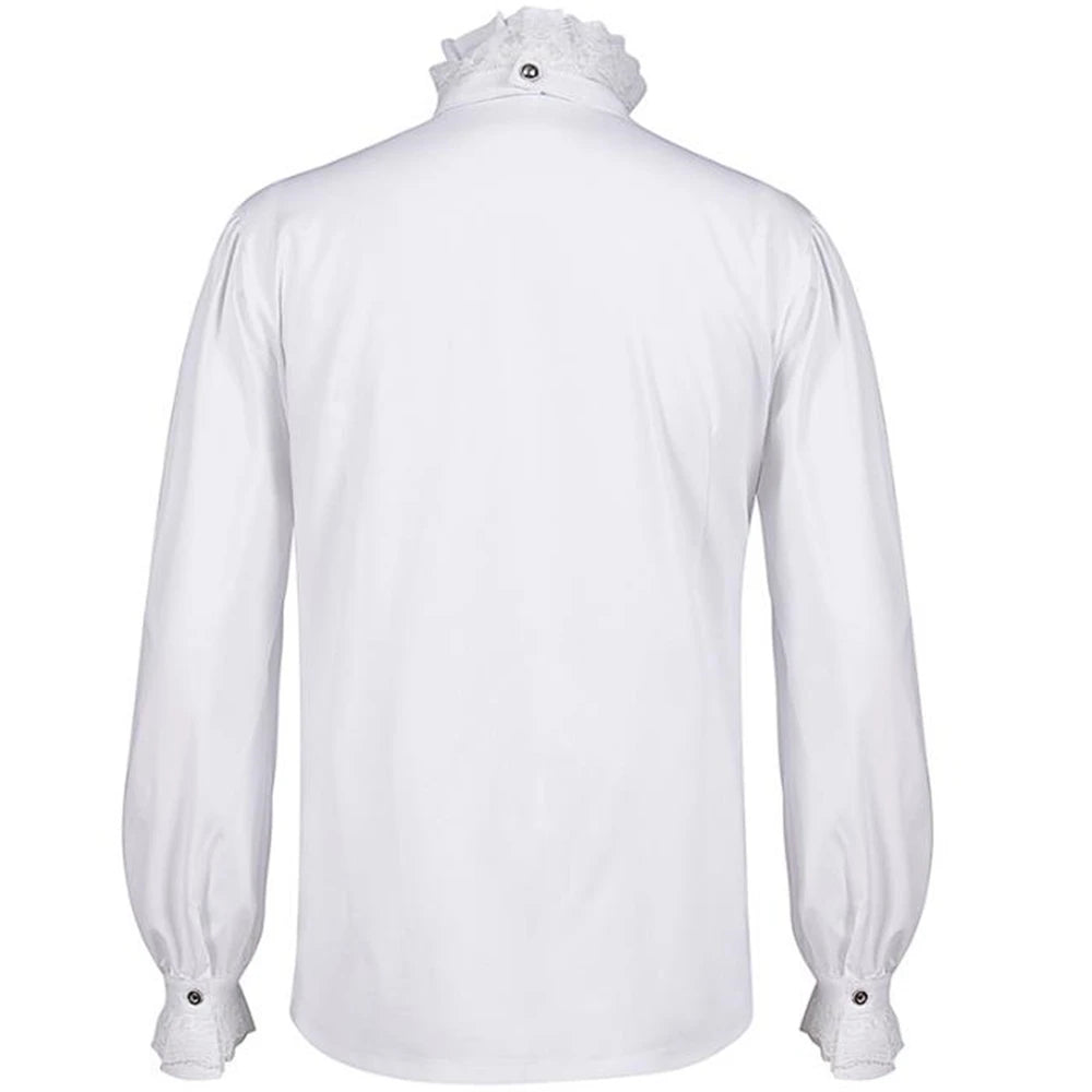 Camisa Gótica Blanca de Hombre con Jabot de Encaje