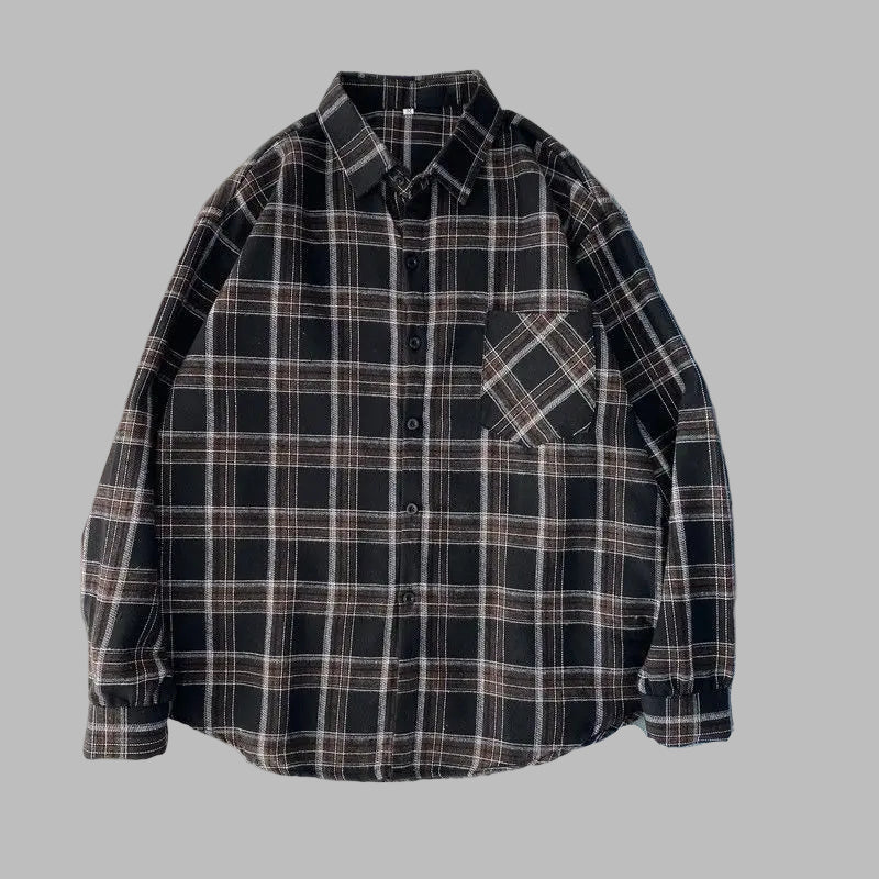 Camisa Negra de Cuadros Grunge Punk con Mangas Largas