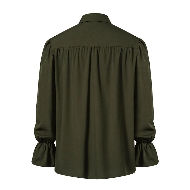 Camisa Rock Caqui con Volantes y Mangas Abullonadas XXL