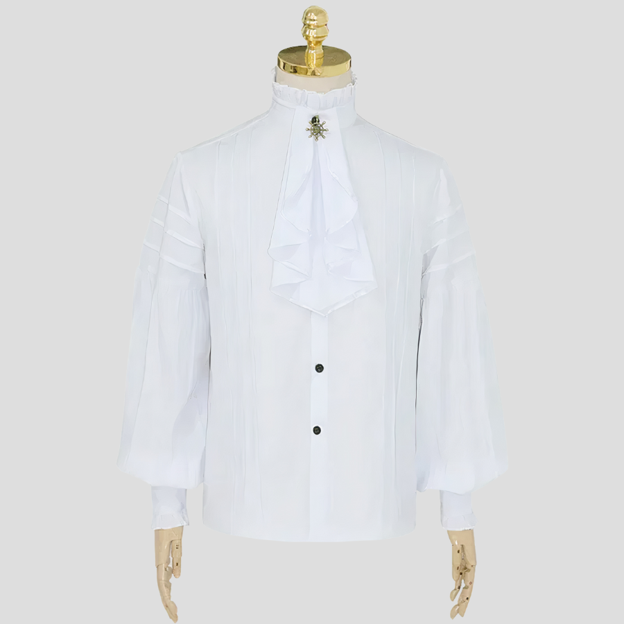 Camisa Blanca Steampunk con Jabot y Mangas Abullonadas