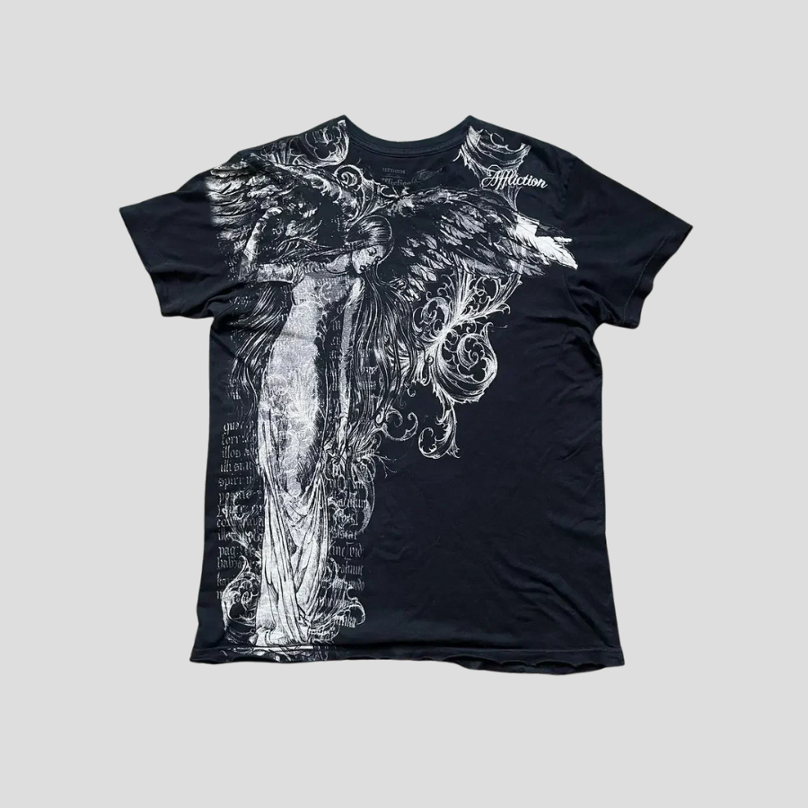 Camiseta Gótica con Figura Angelical y Alas Affliction