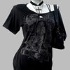 Camiseta Gótica Negra Oversize con Mujer y Motivos Ocultistas
