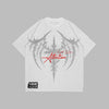 Camiseta gris estilo metal con tachuelas y texto Attention