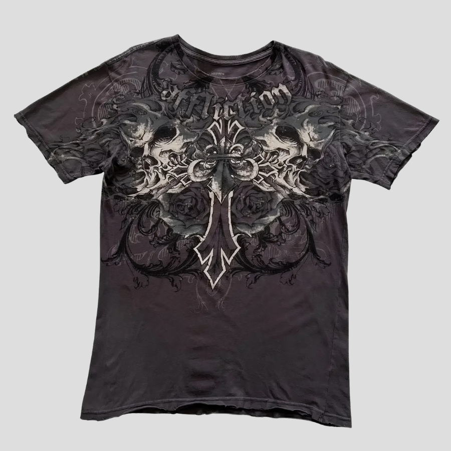 Camiseta Grunge Punk con Calaveras y Cruz Gótica