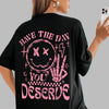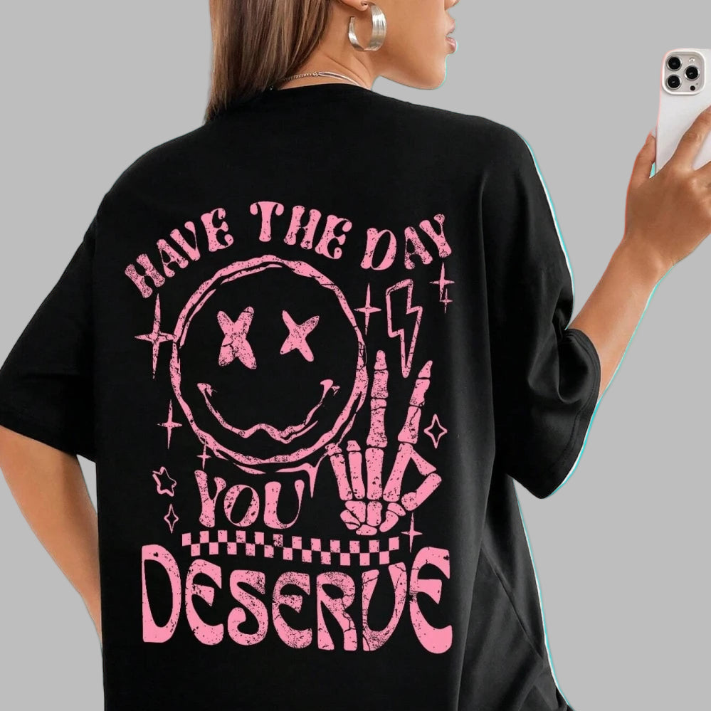 Camiseta Oversize Mujer Grunge Rock Estampado Rosa Smiley