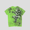 Camiseta Punk Verde Calavera Cruces Gráfica Hombre