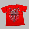Camiseta Roja de Metal con Cruz y Ornamentos Tap Out