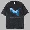 Camiseta vintage negra de metal con estampado de mariposa azul