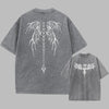 Camiseta Vintage Gris Metal con Alas de Ángel Grunge
