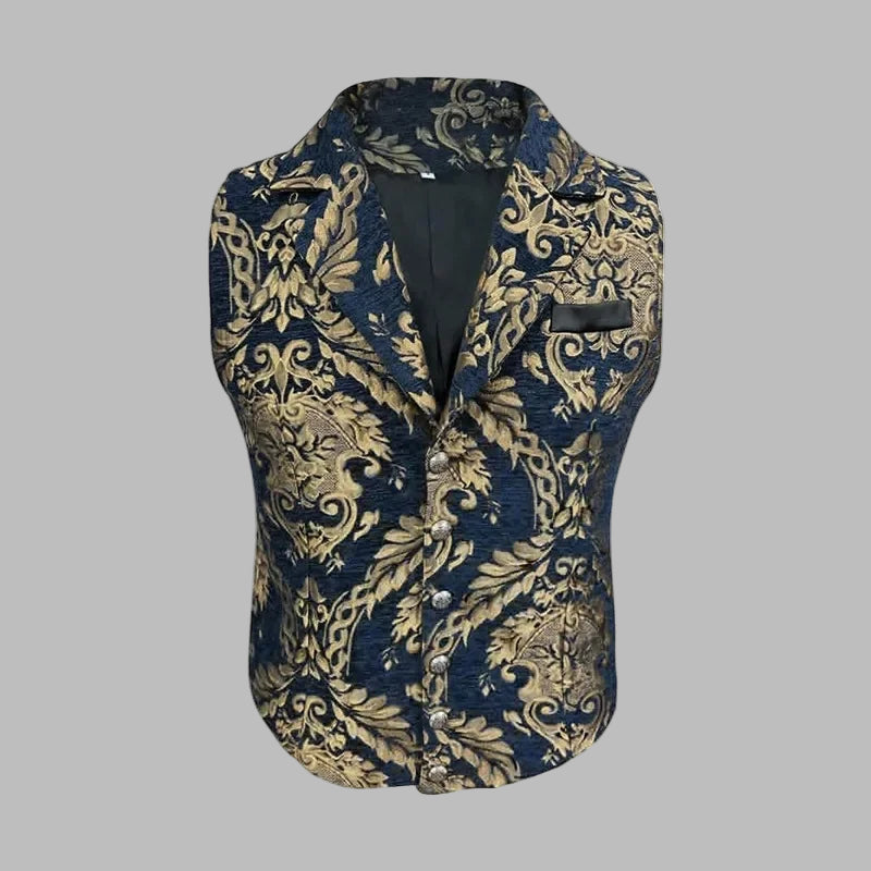 Chaleco Steampunk Azul con Patrón Dorado