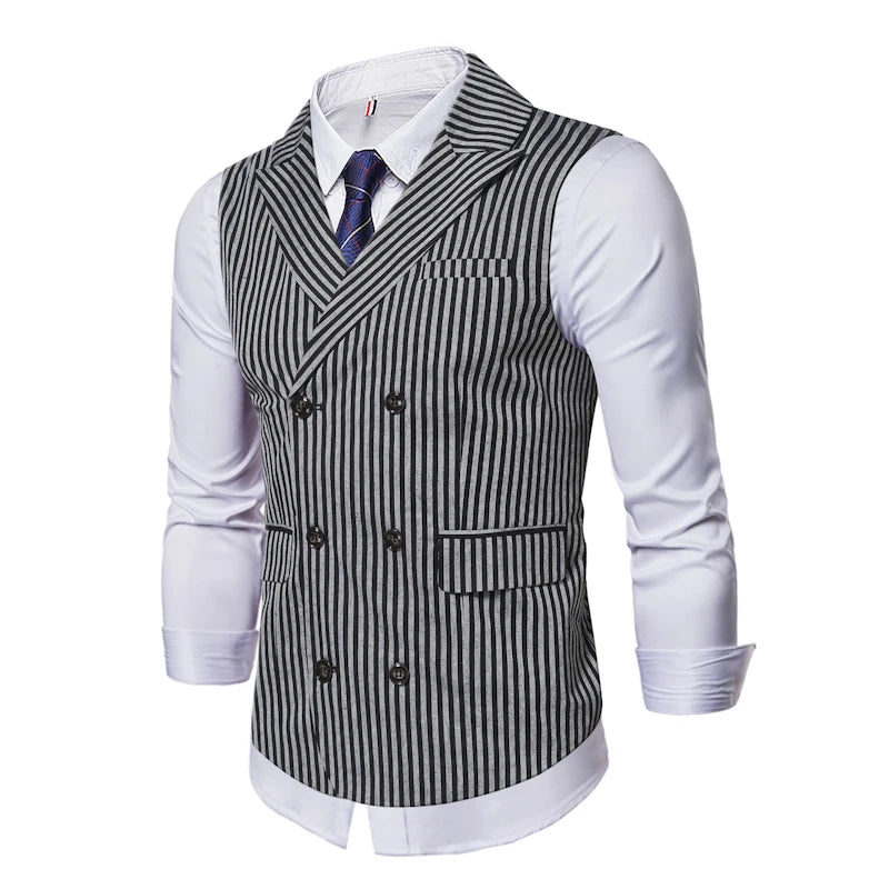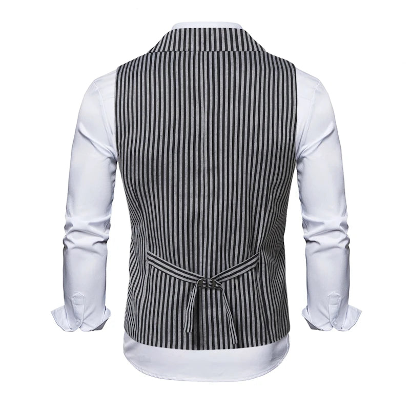 Chaleco Steampunk de Rayas Verticales en Blanco y Negro con Cierre de Doble Botonadura