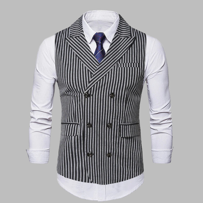 Chaleco Steampunk de Rayas Verticales Blanco y Negro con Doble Botonadura Ver opciones