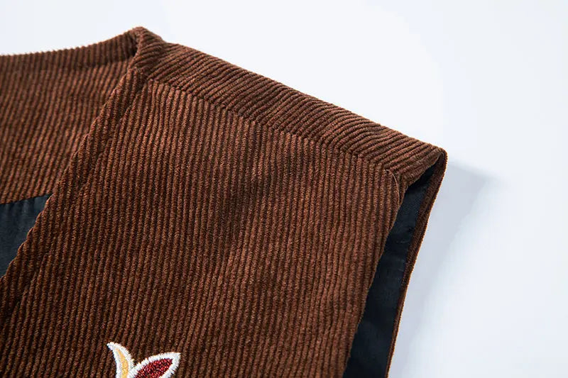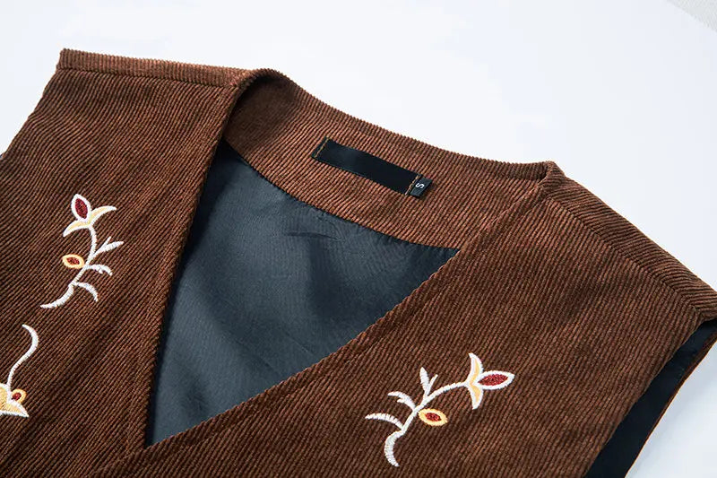 Chaleco Steampunk Marrón con Bordado Floral para Hombre