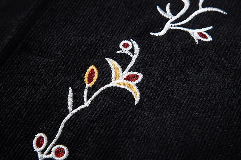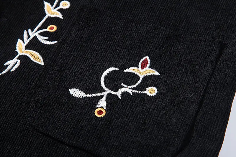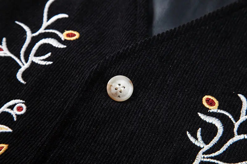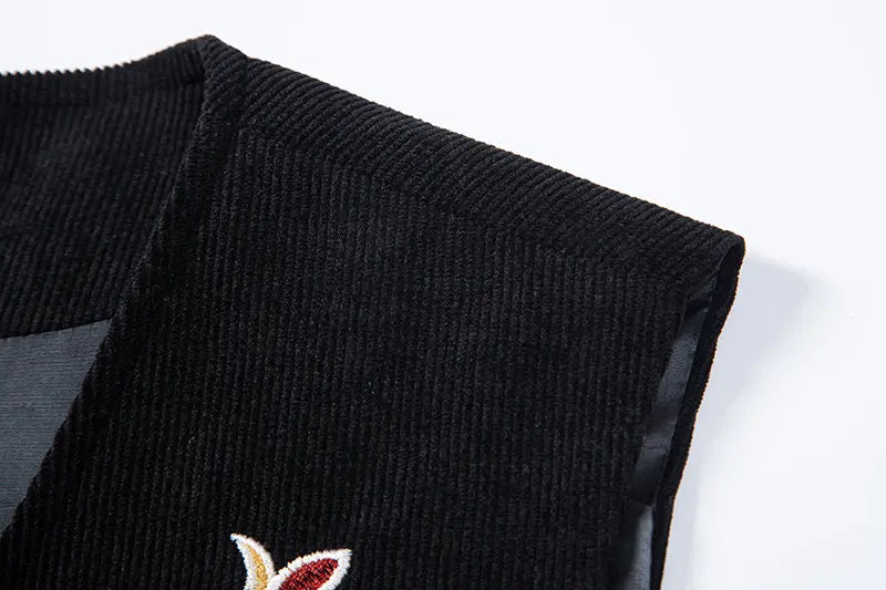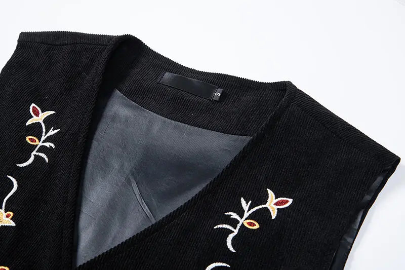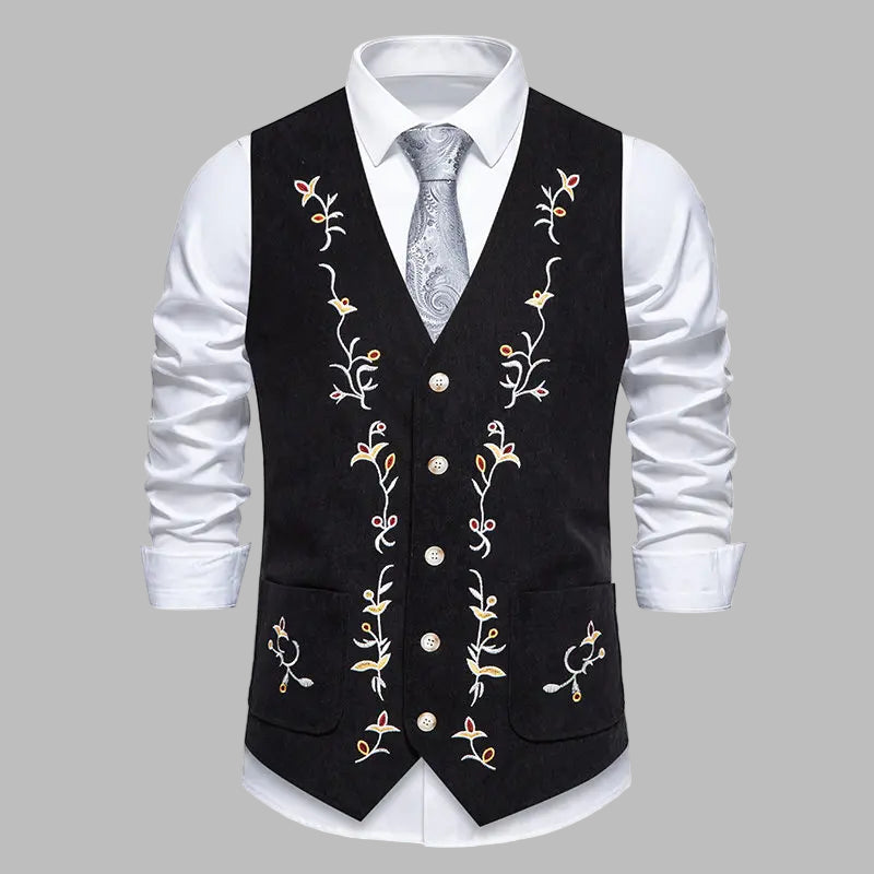 Chaleco Steampunk Negro con Bordado Floral para Hombre