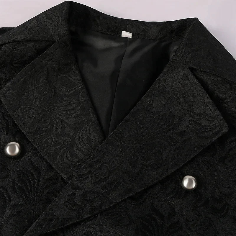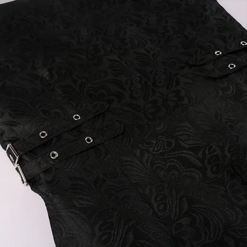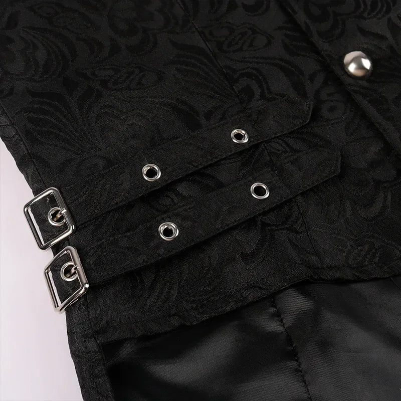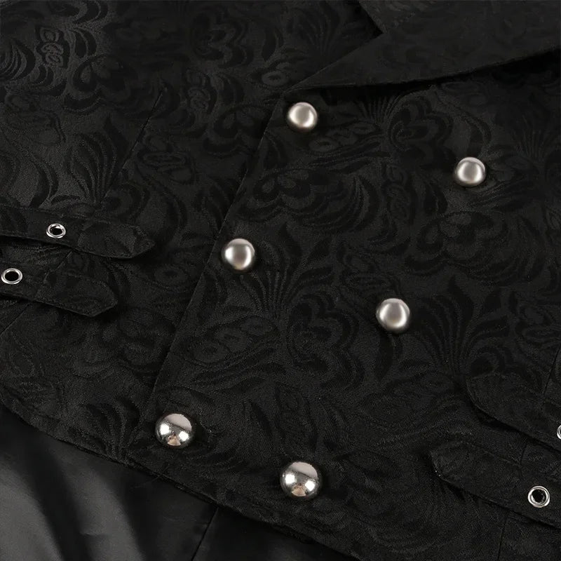 Chaleco Steampunk Negro con Patrón Brocado y Pliegues