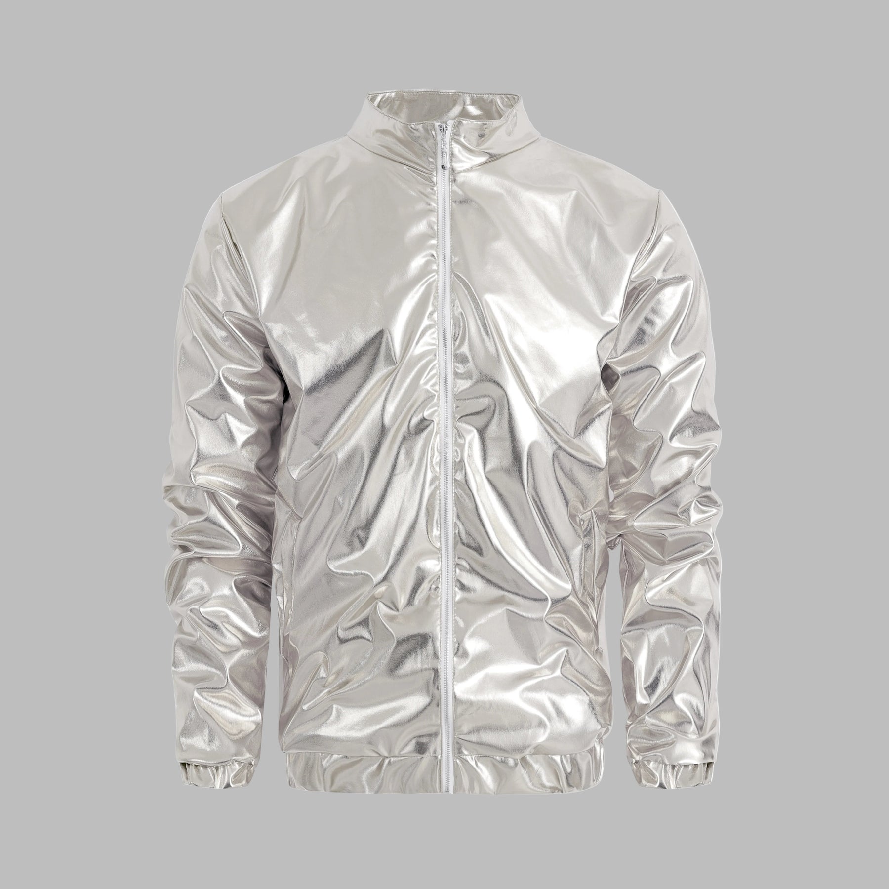Chaqueta Bomber Metálica Plateada Brillante para Hombre