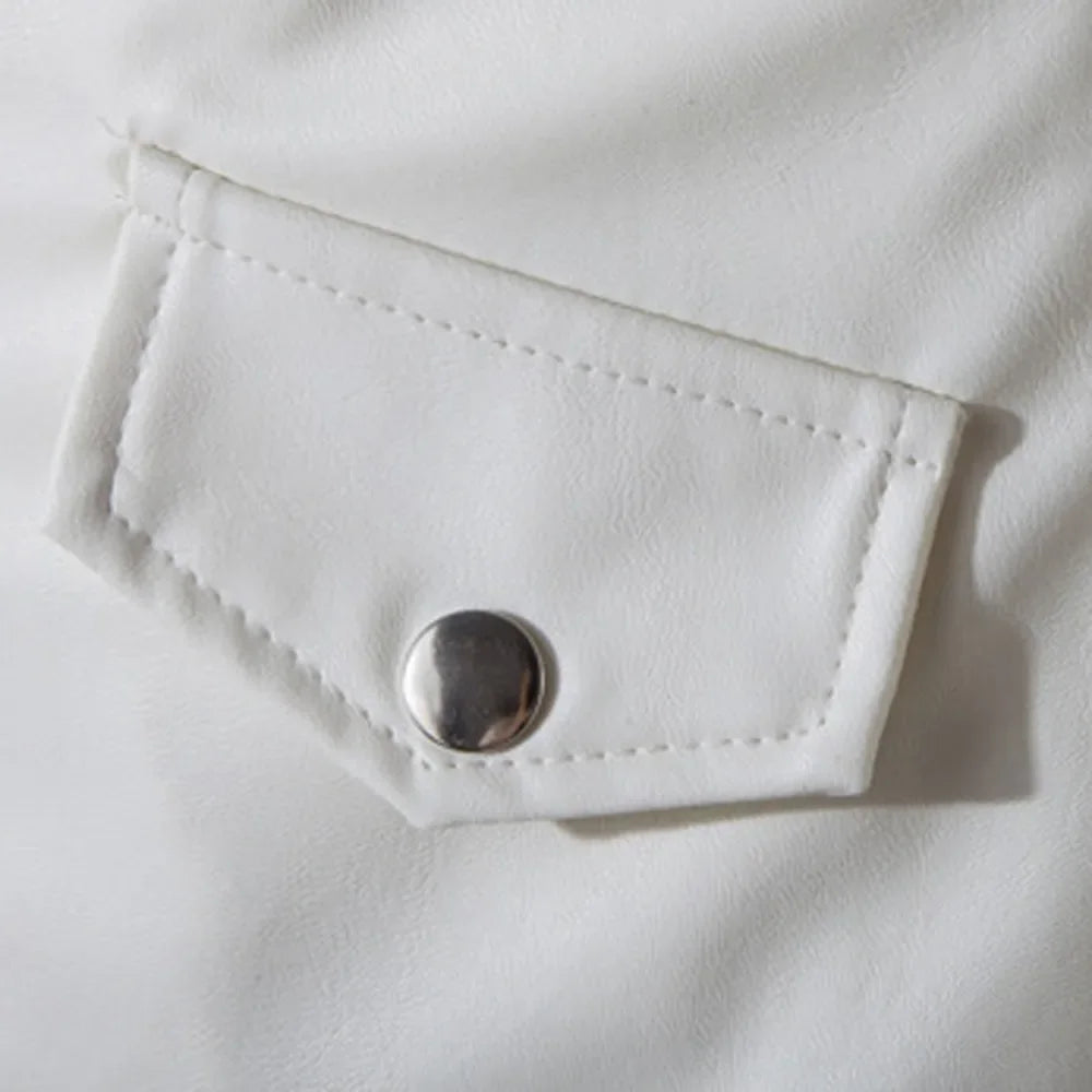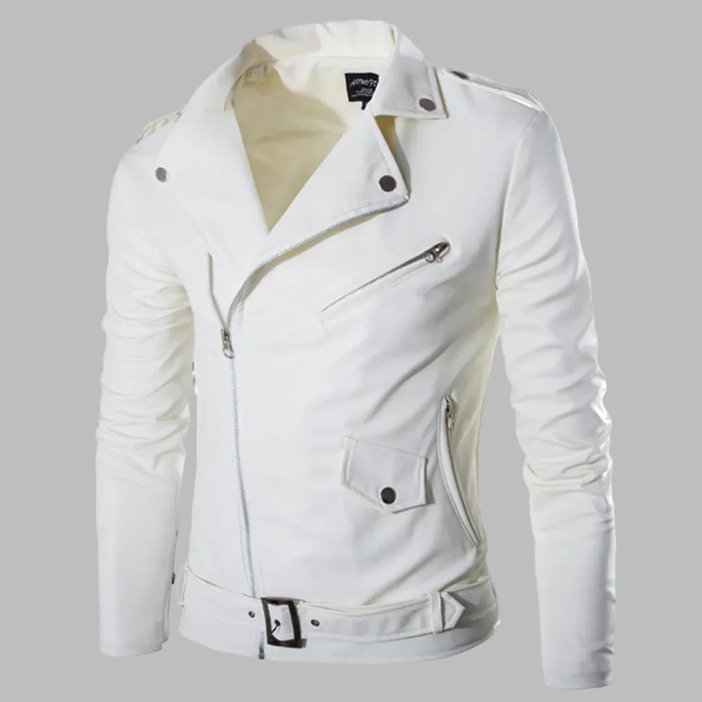 Chaqueta de Cuero Blanca para Hombre de Motocicleta con Cinturón Ver opciones