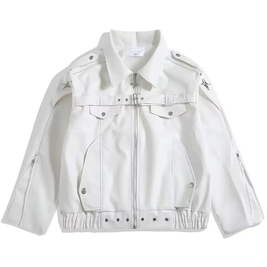Gotycka kurtka płaszczowa ze skóry w koreańskim stylu biały