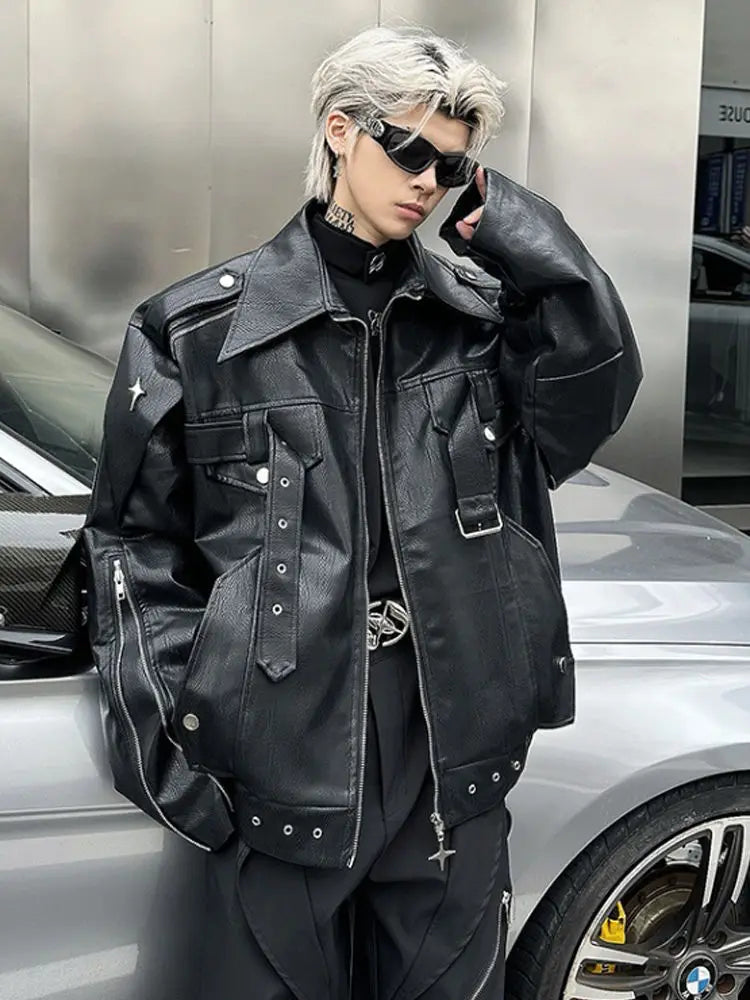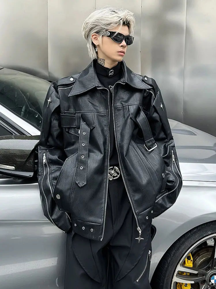 Apuesta por un estilo atrevido y audaz con esta chaqueta de ecopiel para hombre, perfecta para el otoño. Con prácticos bolsillos, corte holgado y un estilo motero inspirado en el Y2K, es perfecta tanto para el día a día como para looks urbanos.