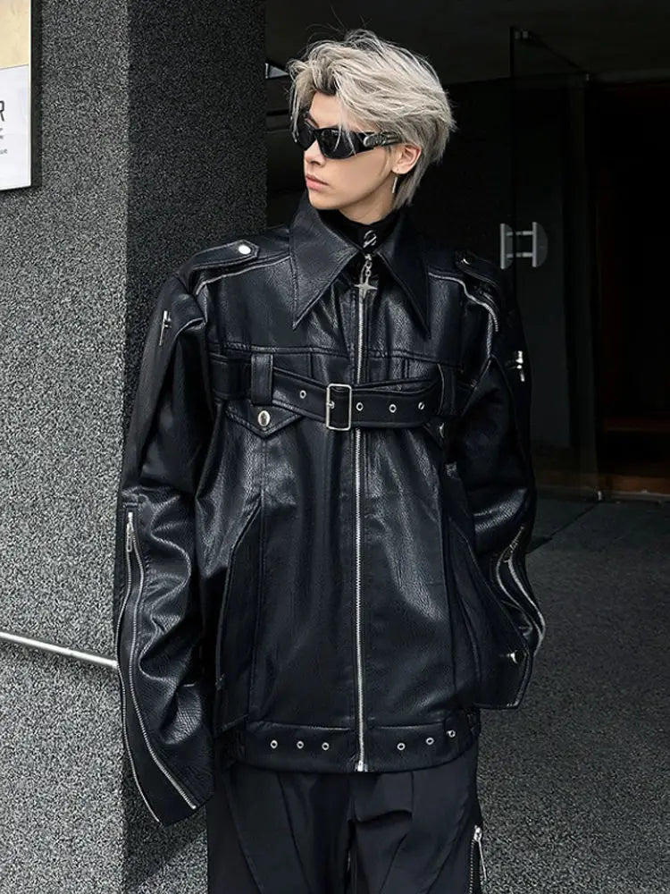 Gotycka kurtka płaszczowa ze skóry w koreańskim stylu