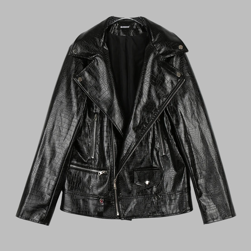 Chaqueta de cuero negra estilo gótico metal punk tipo biker 5XL