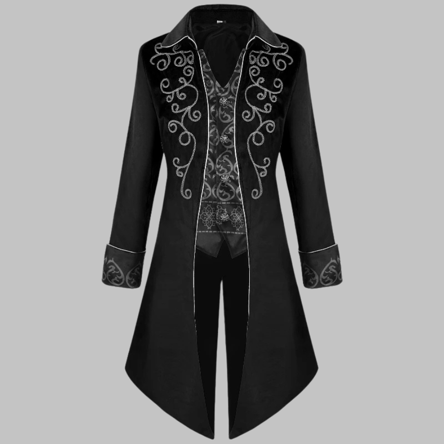 Chaqueta medieval gótica para hombre con decoraciones plateadas.