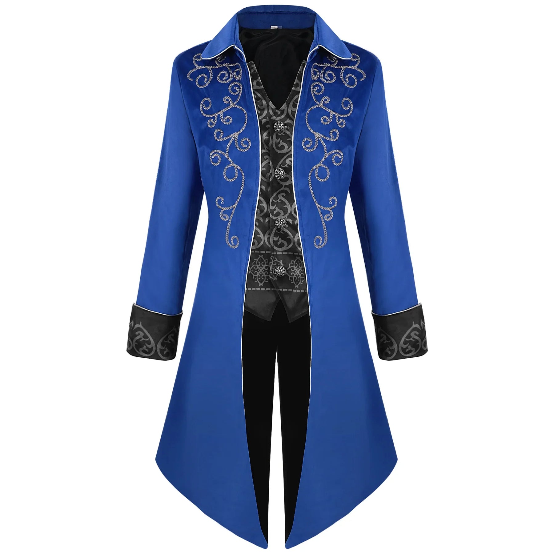 Gotycka marynarka średniowieczna dla mężczyzn ze srebrnymi zdobieniami niebieski