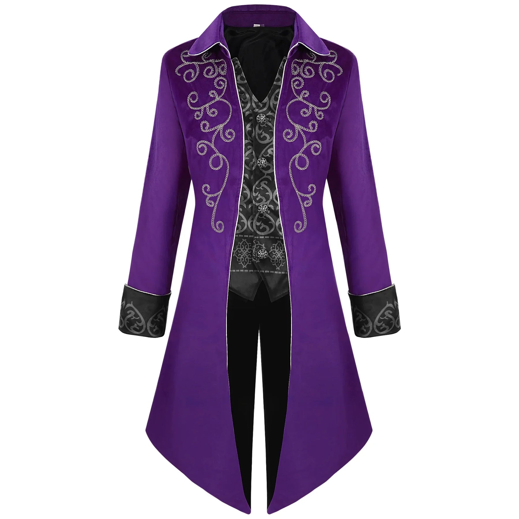 Gotycka marynarka średniowieczna dla mężczyzn ze srebrnymi zdobieniami fioletowy