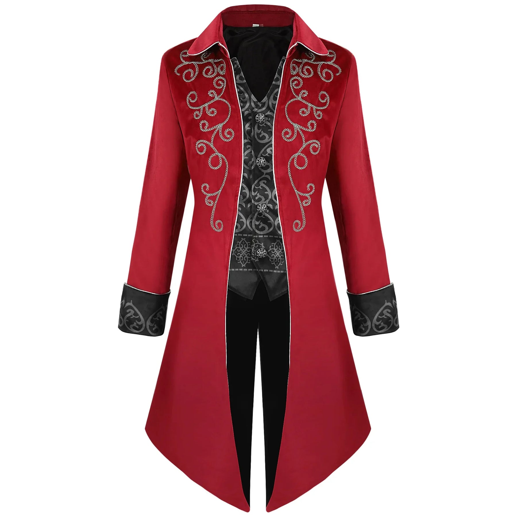 Gotycka marynarka średniowieczna dla mężczyzn ze srebrnymi zdobieniami czerwony