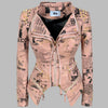 Chaqueta Punk Rock Estilo Ramones con Estampado de Periódico Rosa