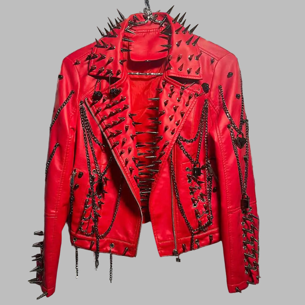 Chaqueta Punk Roja con Tachuelas y Cadenas