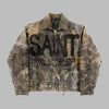 Chaqueta Vaquera Gris Lavado Vintage con Tachuelas Estilo Grunge Rock Metal