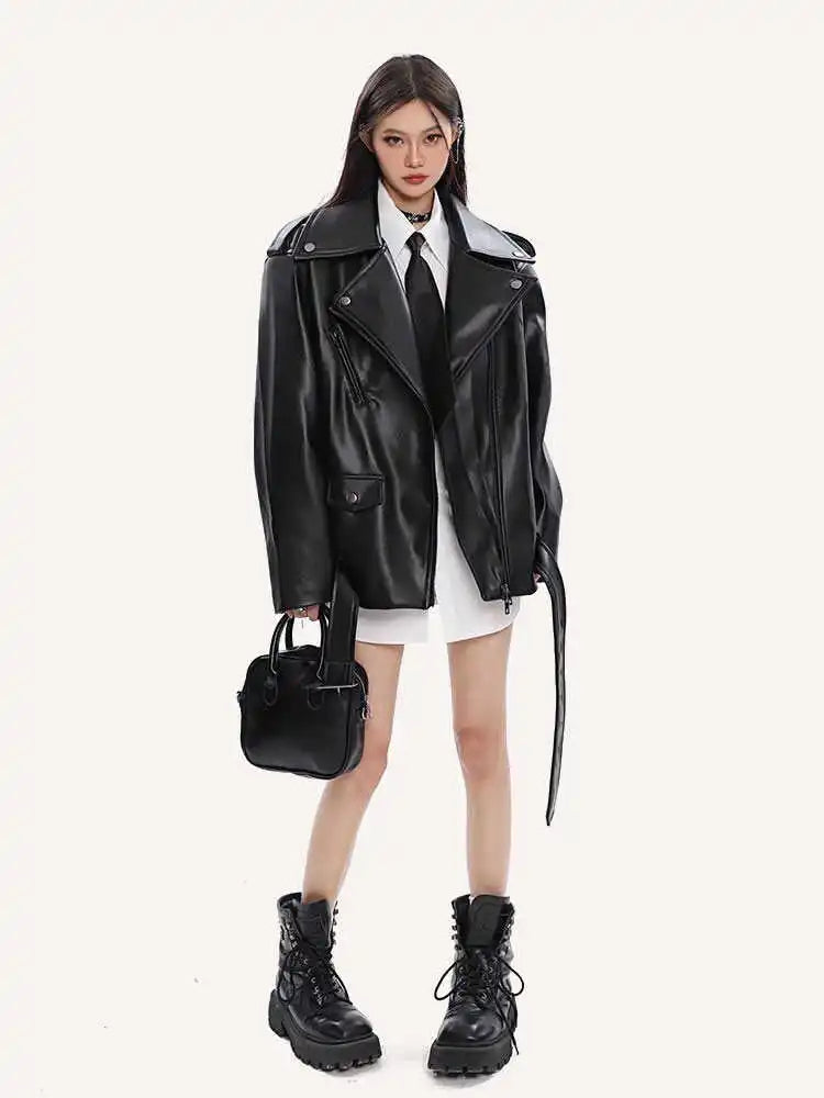 Chaqueta Vintage Larga de Cuero Negra Gótica Oversize para Mujer Ver opciones