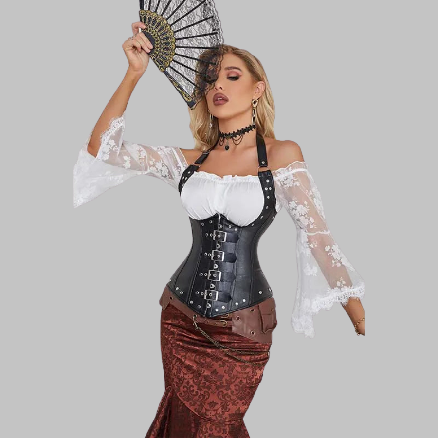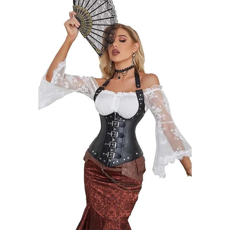 Corsé de mujer de polipiel negra - Estilo gótico victoriano